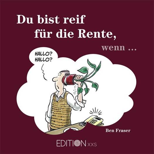 Du bist reif für die Rente, wenn...Du wunderst dich, dass so viele Autos auf der falschen Seite fahren?Dein Zahnarzt erschrickt, weil du dich für die Kontrolluntersuchung ausziehst?Dies sind nur zwei untrügliche Hinweise darauf, dass du reif für die Rente bist.Nimm es mit Humor!