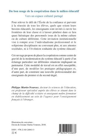Pour relever le défi de l'École de la confiance et parvenir à la réussite de tous les élèves, les enseignants sont invités à ouvrir les frontières de leur classe. Cette invitation institutionnelle vise à rompre avec l'individualisme professionnel ne convenant plus. Cet ouvrage propose de placer la coopération comme centre de gravité de la modernisation du système éducatif à partir d'un éclairage particulier sur différentes situations impliquant un partenariat. Cette modalité de travail est en effet susceptible, d'une part, de modifier les pratiques pédagogiques et, d'autre part, de construire une nouvelle professionnalité des enseignants du premier et du second degré.