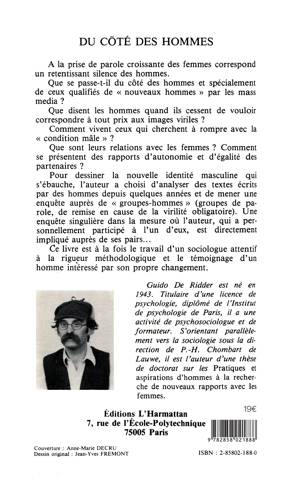 Le féminisme interroge depuis longtemps le rapport homme-femme, et on oublierait presque que les hommes aussi doivent s'emparer de cette question. Guido de Ridder fait partie de ces quelques voix qui constatent une nouvelle approche de leurs rapports aux femmes dans leur mode d'union et la déconstruction progressive de l'assignement des rôles traditionnels; mais surtout qui s'interrogent sur une nouvelle idendité possible. Son enquête auprès d'un groupe d'hommes vient souligner et faire entendre ceux qui ont déjà