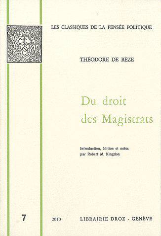 Le Droit des magistrats de Théodore de Bèze, la Franco-Gallia de François Hotman et les Vindicine contra tyrannos attribuées à François Duplessis Mornay constituent le corpus des principaux traités qu’il est convenu de qualifier de « monarchomaques ». Encouragés par la Saint-Barthélemy, ces textes, qui prennent part au débat sur la nature et l’étendue du pouvoir, formalisent la radicalisation des théories politiques protestantes. Dans le Droit des magistrats, Théodore de Bèze considère le devoir fait aux magistrats des villes de défendre l’Eglise contre ceux qui l’assaillent. Il leur assimile ensuite les « nobles de bon sang », ducs, comtes, barons, châtelains héréditaires, qui protègeront les croyants persécutés. Il justifie ainsi l’appel à une résistance armée, qui serait orchestrée par les magistrats, et le droit d’insurrection, tout en blâmant les régicides. « Monarchomaque » signifie en effet adversaire du pouvoir concentré entre les mains d’un seul, mais non assassin ! C’est la naissance du droit de résistance légitime au tyran. Dans le contexte polémique des guerres de religion, les théories monarchomaques deviennent l’instrument politique dont se saisissent les théologiens aux fins d’infléchir la politique royale.