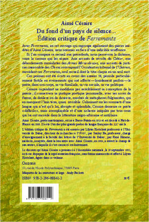 Les poèmes de « Ferrements » reflètent une période particulièrement fertile en événements pour Césaire et nous montrent sa pratique poétique personnelle, avec ses accès de fureur, de douleur ou de douceur, enrobés de métaphores fulgurantes, qui en masquent l'huis ténu, quasi invisible. Culminant sur les sommets d'une langue qui n'est qu'à lui, abrupte et splendide, Césaire demeure ce poète « difficile », mais d'une richesse inégalée, irremplaçable dans la littérature négro-africaine et antillaise.