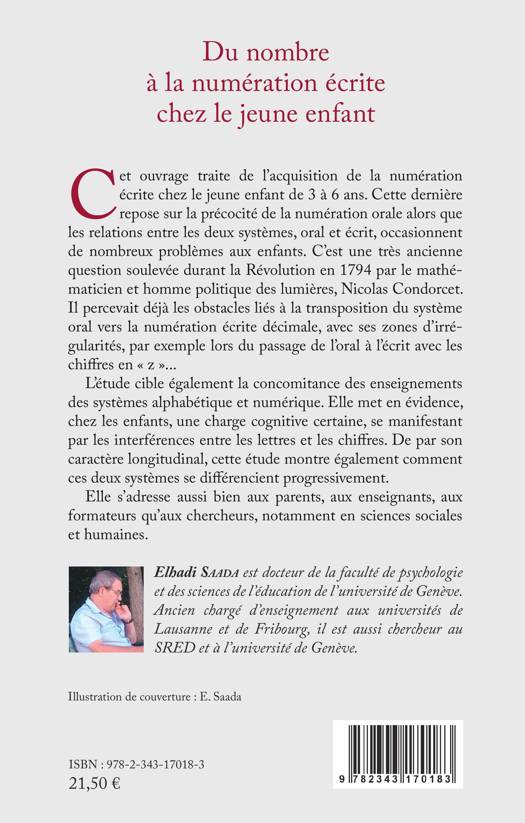 Cet ouvrage traite de l'acquisition de la numération écrite chez le jeune enfant de 3 à 6 ans. Cette dernière repose sur la précocité de la numération orale alors que les relations entre les deux systèmes, oral et écrit, occasionnent de nombreux problèmes aux enfants. C'est une très ancienne question soulevée durant la Révolution en 1794 par le mathématicien et homme politique des lumières, Nicolas Condorcet. Il percevait déjà les obstacles liés à la transposition du système oral vers la numération écrite décimale, avec ses zones d'irrégularités, par exemple lors du passage de l'oral à l'écrit avec les chiffres en "z"...
