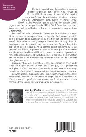 Ces articles sont présentés autour de la question du sujet et de ce que la sociopsychanalyse appelle "l'actepouvoir", c'est-à-dire le pouvoir du sujet sur ce qu'il fait (et les effets de ses actes) d'un point de vue y compris inconscient. Il s'agit bien du développement du pouvoir sur nos actes que Gérald Mendel a exposé en détail.