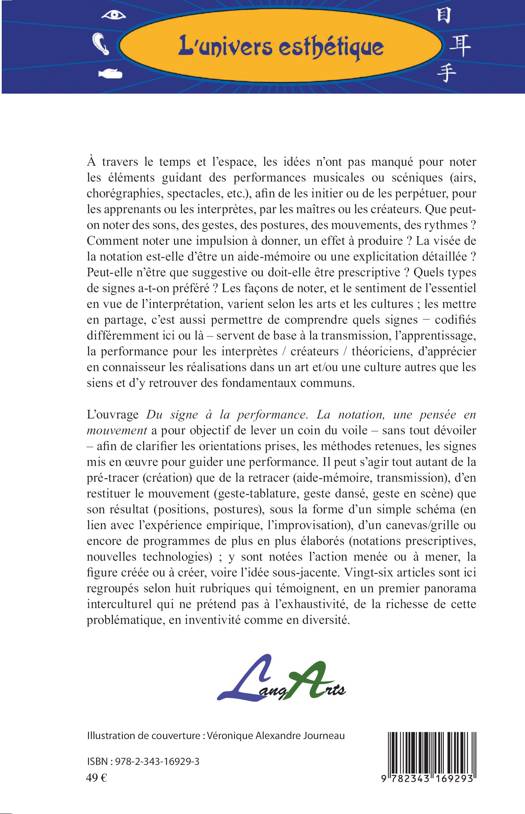 À travers le temps et l'espace, les idées n'ont pas manqué pour noter les éléments guidant des performances musicales ou scéniques (airs, chorégraphies, spectacles, etc.), afin de les initier ou de les perpétuer, pour les apprenants ou les interprètes, par les maîtres ou les créateurs. Que peut-on noter des sons, des gestes, des postures, des mouvements, des rythmes ? Les façons de noter et le sentiment de l'essentiel en vue de l'interprétation varient selon les arts et les cultures. Les mettre en partage, c'est aussi permettre de comprendre quels signes servent de base à la transmission et d'apprécier en connaisseur les réalisations dans un art et/ou une culture autres que les siens.