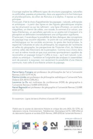 Ce livre explore les différents types de structures paysagères, naturelles ou artificielles, passées et présentes, dans une approche à la fois historique et pluridisciplinaire, du sillon de Romulus à la skyline. Il repose sur deux principes. D’une part, il fait le choix d’appréhender les paysages – naturels, anthropisés et artistiques – à partir des lignes et des figures géométriques simples qui les structurent ou qui les rythment : une ligne d’horizon, un cercle de mégalithes, un chemin de crêtes, une rocade, le sommet d’un volcan, une ligne d’éoliennes, un parcellaire agricole ou un gratte-ciel s’imposent à la perception et définissent immédiatement une configuration signifiante. D’autre part, il revendique la possibilité de faire dialoguer des conceptions du paysage trop souvent séparées : le point de vue anthropologique et archéologique sur les sociétés anciennes, le geste des land-artistes, le regard de l’urbaniste et celui du philosophe, les exigences de l’architecte et celles du géographe, les perspectives de l’historien d’art, du littéraire comme celles des théoriciens de la perception. Comme nous vivons dans un seul et même monde et que nous sommes spontanément capables de reconnaître un paysage lorsqu’il s’offre à nous – qu’il soit naturel, rural, urbain ou artistique –, l’ambition et l’originalité des analyses ici rassemblées sont de parvenir à esquisser, non seulement la possibilité d’une théorie commune, mais celle d’une théorie unitaire du paysage.