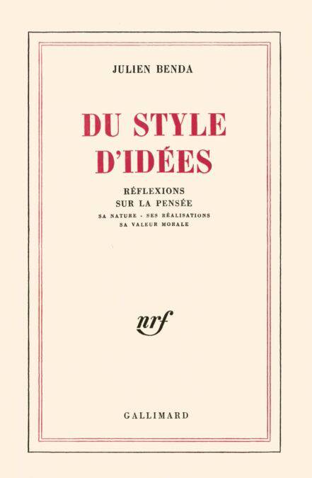 "Je donne à cette étude le titre d'un de ses chapitres parce que c'est de ce chapitre qu'elle est sortie. C'est en m'interrogeant sur le style d'idées, d'abord mon seul propos, que j'en suis venu à réfléchir sur la pensée. Je paye avec ce titre une dette de reconnaissance. Ce titre d'ailleurs n'étrécit point le sujet de l'ouvrage. Le style d'idées est au fond le même sujet que la pensée. Le style d'idées a en effet cela de particulier, par quoi il diffère du style littéraire, qu'il doit se mouler exactement sur la pensée, de même qu'en retour celle-ci lui demande de ne lui valoir qu'un vêtement transparent sans rechercher de beauté pour lui-même, sa beauté consistant dans le parfait de cette transparence. On pourrait observer à ce propos que les fameux vers de Boileau prêtent à l'esprit une action en deux temps, laquelle au vrai n'en présente qu'un. Il ne semble point que l'esprit commence par « concevoir bien », c'est-à-dire par former une idée claire et que ce soit ensuite que pour exprimer cette idée les mots « arrivent aisément ». La vérité est que ces deux opérations n'en font qu'une et que, lorsque l'esprit forme vraiment une idée claire, les mots voulus sont là dans le même moment, par la raison que notre esprit est ainsi fait que la formation d'un concept et l'évocation d'un mot sont un seul et même acte. Si le lecteur objecte qu'il lui advient couramment de former des idées claires et de ne pourtant point trouver les mots propres à les exprimer, je lui répondrai que c'est que ses idées qu'il croyait claires ne l'étaient point et l'inviterai à constater que, lorsque après maint tâtonnement il trouve enfin le mot voulu (quitte à le forger), il découvre qu'à ce moment son idée devient vraiment claire alors qu'elle laissait de l'être auparavant. Son esprit ne contenait que de la clarté en puissance, alors qu'avec le mot elle est devenue réelle. Tout cela revient à dire que, lorsqu'il s'agit de pensée logique, comme il arrive pour cet ouvrage, étudier la pensée ou étudier l'expression de la pensée ne sont au fond qu'un seul problème ; ce qui n'est point le cas pour la pensée du romancier et moins encore du poète. Parler du style d'idées est presque exclusivement parler de l'idée." Julien Benda