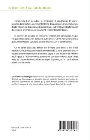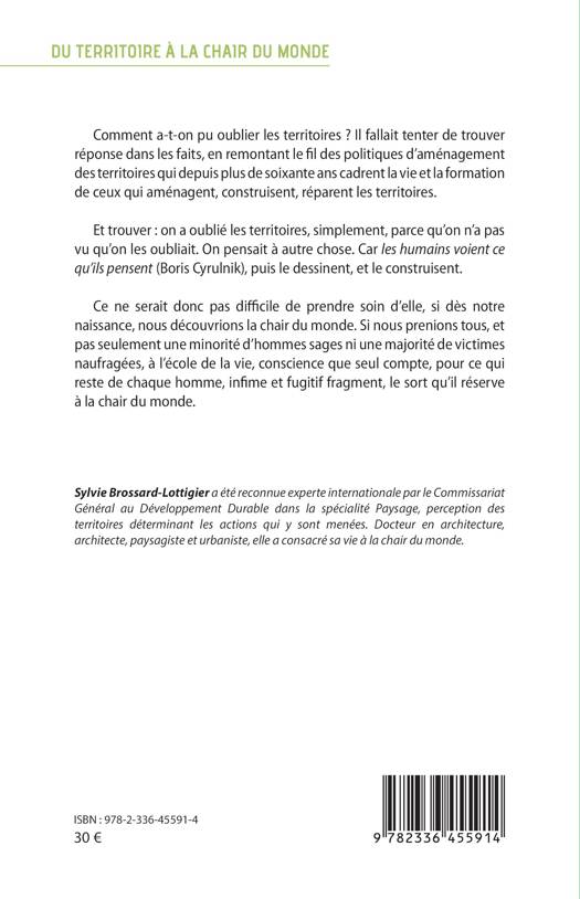 Comment a-t-on pu oublier les territoires ? Il fallait tenter de trouver réponse dans les faits, en remontant le fil des politiques d'aménagement des territoires qui depuis plus de soixante ans cadrent la vie et la formation de ceux qui aménagent, construisent, réparent les territoires. Et trouver: on a oublié les territoires, simplement, parce qu'on n'a pas vu qu'on les oubliait. On pensait à autre chose. Car les humains voient ce qu'ils pensent (Boris Cyrulnik), puis le dessinent, et le construisent. Ce ne serait donc pas difficile de prendre soin d'elle, si dès notre naissance, nous découvrions la chair du monde. Si nous prenions tous, et pas seulement une minorité d'hommes sages ni une majorité de victimes naufragées, à l'école de la vie, conscience que seul compte, pour ce qui reste de chaque homme, infime et fugitif fragment, le sort qu'il réserve à la chair du monde.