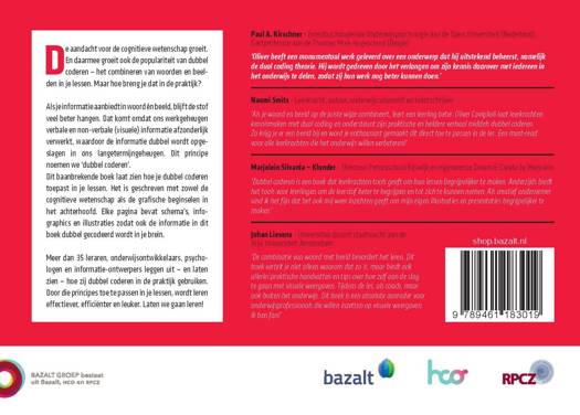 Dit baanbrekende boek laat zien hoe je dubbel coderen toepast in je lessen. Het is geschreven met zowel de cognitieve wetenschap als de grafische beginselen in het achterhoofd. Elke pagina bevat schema’s, infographics en illustraties zodat ook de informatie in dit boek dubbel gecodeerd wordt in je brein. Meer dan 35 leraren, onderwijsontwikkelaars, psychologen en informatie-ontwerpers leggen uit – en laten zien – hoe zij dubbel coderen in de praktijk gebruiken. Door die principes toe te passen in je lessen, wordt leren effectiever, efficiënter en leuker. Laten we gaan leren!