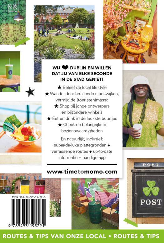 Stap je hotel uit en loop regelrecht naar de leukste wijken van Dublin. Met 4 verrassende routes door de verschillende wijken kun je de stad in je eigen tempo ontdekken én de lokale lifestyle beleven. Bij Time to Momo slaan we de dertien-in-een-dozijn-winkelstraten over en wandel je, terwijl je onderweg een bezienswaardigheid meepikt, naar de tofste winkels, vintage markten, creatieve hotspots en fijne parken waar de locals zelf graag komen. Inclusief alle belangrijke bezienswaardigheden, leuke top 10-lijstjes, meer dan 250 adressen om te eten, drinken en shoppen, handige uitneembare stadsplattegrond én gratis kaart-app. Time to Momo is met meer dan 200.000 verkochte gidsen per jaar de bestverkochte stedengids van Nederland en België. We zijn al meer dan 20 jaar een inspiratiebron voor reizigers. Check al onze stedentripbestemmingen, de laatste nieuwe tips en hotelinspiratie op www.timetomomo.com.