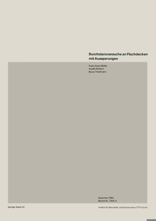 Im Rahmen des Forschungsprojektes "Vorgespannte Platten" wurden am Institut für Baustatik und Konstruktion der ETH Zürich verschiedene theoretische und experimentelle Arbeiten durchgeführt. Dabei wurden nament- lich folgende Probleme behandelt: - Biegeverhalten von Platten mit Vorspannung ohne Verbund - Fliessbedingung für Stahlbeton mit Berücksichtigung der Betonzugfestigkeit - Schubtragverhalten von Stahlbeton- und Spannbetonplatten - Plastische Berechnung von Stahlbeton - Durchstanzverhalten von Stahlbeton- und Spannbetonplatten im Bereich von Innenstützen - Durchstanzverhalten von Stahlbeton- und Spannbetonplatten im Bereich von Rand- und Eckstützen. Die Resultate dieser Arbeiten sind in den Berichten [1 bis 10] zusammengestellt und veröffentlicht. Zum besseren Verständnis des Tragverhaltens von Flachdecken, die im Bereich von Innenstützen durch Aussparungen geschwächt sind, wurde im Anschluss an die obgenannten Untersuchungen die im folgenden beschriebene Ver- suchsserie geplant und durchgeführt. 1.1 Problemstellung In einer Flachdecke sind in dem von Querkräften wie auch von Momenten hochbeanspruchten Bereich um die Stützen häufig Aussparungen erforderlich: Leitungskanäle für Heizung, Lüftung, Elektro- und Sanitär- installationen verlaufen vertikal den Stützen entlang und schwächen diese ohnehin schon kritische An- schlusszone erheblich. Es stellt sich nun einerseits die Frage, um wieviel der Schubtragwiderstand des Stützenanschlusses durch die Anordnung einer Aussparung von bestimmter Grösse und Lage reduziert wird, und andererseits, mit welchen Massnahmen dieser Bauteil verstärkt werden kann, um die durch die Aussparung verursachte Schwächung zu kompensieren.
