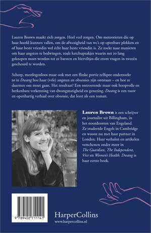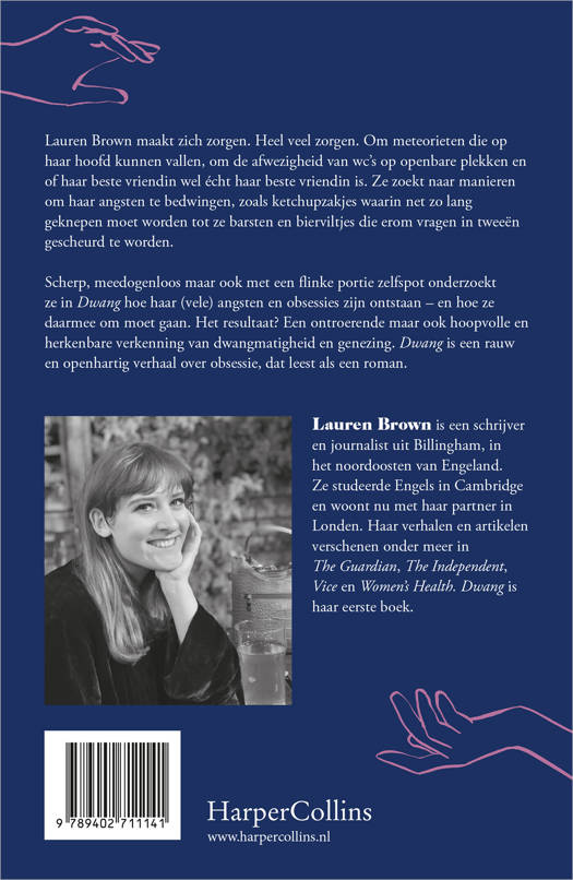 Scherp, meedogenloos maar ook met een flinke portie zelfspot onderzoekt ze in Dwang hoe haar (vele) angsten en obsessies zijn ontstaan – en hoe ze daarmee om moet gaan. Het resultaat? Een ontroerende maar ook hoopvolle en herkenbare verkenning van dwangmatigheid en genezing. Dwang is een rauw en openhartig verhaal over obsessie, dat leest als een roman.