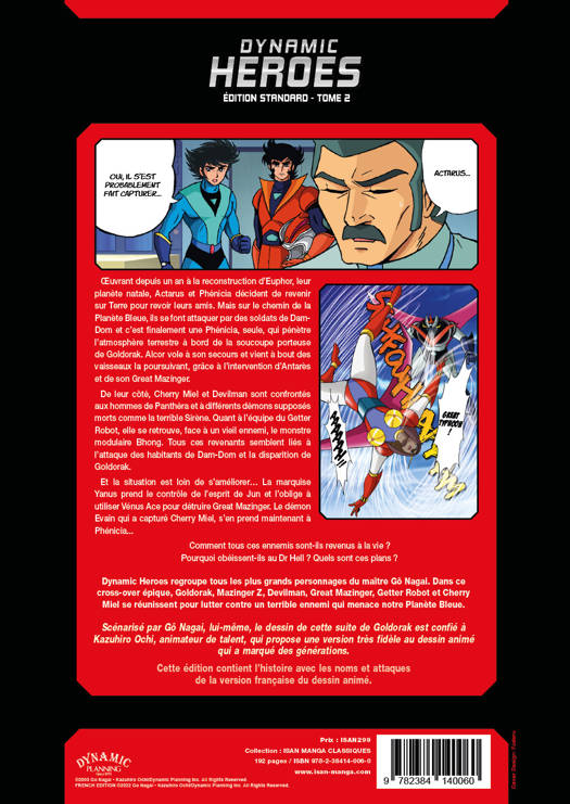 uvrant depuis un an à la reconstruction d'Euphor, leur planète natale, Actarus et Phénicia décident de revenir sur Terre pour revoir leurs amis. Mais sur le chemin de la Planète Bleue, ils se font attaquer par des soldats de Dam-Dom et c'est finalement une Phénicia, seule, qui pénètre l'atmosphère terrestre à bord de la soucoupe porteuse de Goldorak. Alcor vole à son secours et vient à bout des vaisseaux la poursuivant, grâce à l'intervention d'Antarès et de son Great Mazinger. De leur côté, Cherry Miel et Devilman sont confrontés aux hommes de Panthéra et à différents démons supposés morts comme la terrible Sirène. Quant à l'équipe du Getter Robot, elle se retrouve, face à un vieil ennemi, le monstre modulaire Bhong. Tous ces revenants semblent liés à l'attaque des habitants de Dam-Dom et la disparition de Goldorak. Et la situation est loin de s'améliorer...