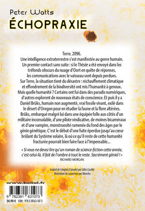 Une intelligence extraterrestre s'est manifestée au genre humain. Un premier contact sans suite : si le Thésée a été envoyé dans les tréfonds obscurs du nuage d'Oort en quête de réponses, les communications avec le vaisseau sont depuis perdues. Sur Terre, la situation tient du désastre : réchauffement climatique et effondrement de la biodiversité ont mis l'humanité à genoux. Mais quelle humanité ? Certains ont fui dans des paradis numériques, d'autres explorent de nouveaux états de conscience. Et puis il y a Daniel Brüks, humain non augmenté, vrai fossile vivant, exilé dans le désert d'Oregon pour en étudier la faune et la flore altérées. Brüks, embarqué malgré lui dans une équipée folle aux côtés d'un militaire inconsolable, d'une pilote vindicative, de moines bicaméraux et d'une vampire, monstruosité ramenée du fond des âges par le génie génétique. C'est le début d'une fuite éperdue jusqu'au coeur brûlant du Système solaire, là où ce qu'il reste de cette humanité fracturée pourrait bien faire face à l'impensable...