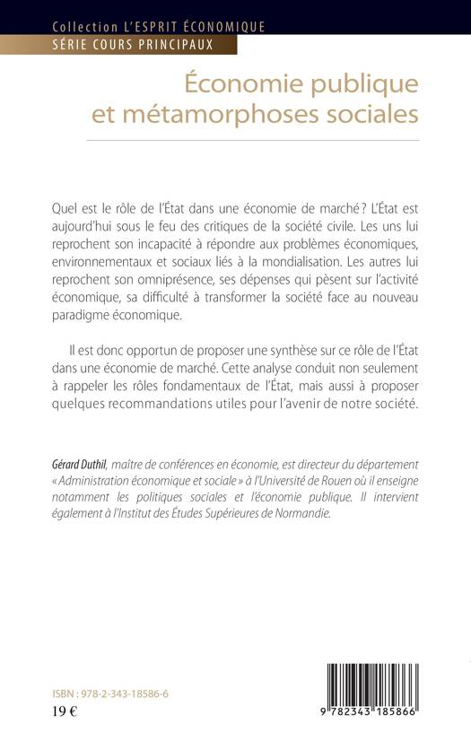 Quel est le rôle de l'État dans une économie de marché ? L'État est aujourd'hui sous le feu des critiques de la société civile. Les uns lui reprochent son incapacité à répondre aux problèmes économiques, environnementaux et sociaux liés à la mondialisation. Les autres lui reprochent son omniprésence, ses dépenses qui pèsent sur l'activité économique, sa difficulté à transformer la société face au nouveau paradigme économique. Il est donc opportun de proposer une synthèse sur ce rôle de l'État dans une économie de marché. Cette analyse conduit non seulement à rappeler les rôles fondamentaux de l'État, mais aussi à proposer quelques recommandations utiles pour l'avenir de notre société.