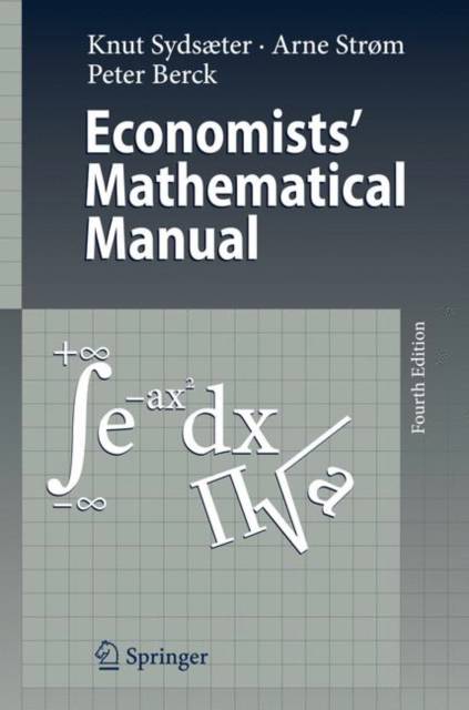 Set Theory. Relations. Functions.- Equations. Functions of one variable. Complex numbers.- Limits. Continuity. Differentiation (one variable).- Partial derivatives.- Elasticities. Elasticities of substitution.- Systems of equations.- Inequalities.- Series. Taylor's formula.- Integration.- Difference equations.- Differential equations.- Topology in Euclidean space.- Convexity.- Classical optimization.- Linear and nonlinear programming.- Calculus of variations and optimal control theory.- Discrete dynamic optimization.- Vectors in ?n. Abstract spaces.- Matrices.- Determinants.- Eigenvalues. Quadratic forms.- Special matrices. Leontief systems.- Kronecker products and the vec operator. Differentiation of vectors and matrices.- Comparative statics.- Properties of cost and profit functions.- Consumer theory.- Topics from trade theory.- Topics from finance and growth theory.- Risk and risk aversion theory.- Finance and stochastic calculus.- Non-cooperative game theory.- Combinatorics.- Probability and statistics.- Probability distributions.- Method of least squares.