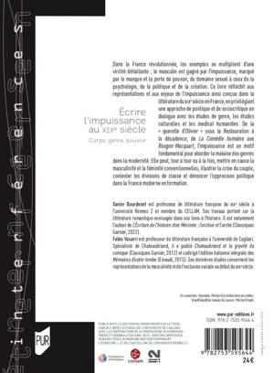 Dans la France révolutionnée, les exemples se multiplient d’une virilité défaillante ; le masculin est gagné par l’impuissance, marqué par le manque et la perte de pouvoir, du domaine sexuel à ceux de la psychologie, de la politique et de la création. Ce livre réfléchit aux représentations et aux enjeux de l’impuissance ainsi conçue dans la littérature du XIXe siècle en France, en privilégiant une approche de poétique et de sociocritique en dialogue avec les études de genre, les études culturelles et les medical humanities. De la « querelle d’Olivier » sous la Restauration à la décadence, de La Comédie humaine aux Rougon-Macquart, l’impuissance est un motif fondamental pour aborder le malaise des genres dans la modernité. Elle peut, tour à tour ou à la fois, mettre en cause la masculinité et la féminité conventionnelles, illustrer la crise du couple, contester les divisions de classe et dénoncer l’oppression politique dans la France moderne en formation.