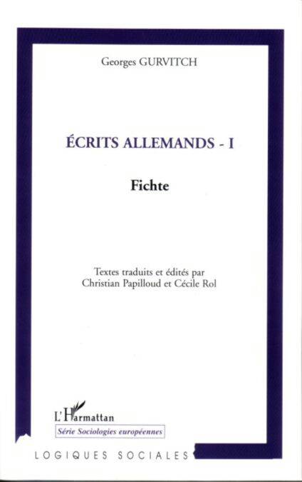 De Georges Gurvitch, on retient son parcours académique en France, où il devient professeur à la Sorbonne. On a salué son engagement lorsqu'il fallut reconstruire la sociologie durkheimienne après la Deuxième Guerre Mondiale. On connaît enfin son rôle dans la mise en place des premières unités du Centre National de la Recherche Scientifique. Sa revue Les Cahiers Internationaux de Sociologie paraît aujourd'hui encore. En revanche, on ignore le plus souvent les influences qui ont guidé sa vie intellectuelle . Le premier des 3 volumes de ses écrits allemands est consacré à son travail méconnu sur Johann G. Fichte.