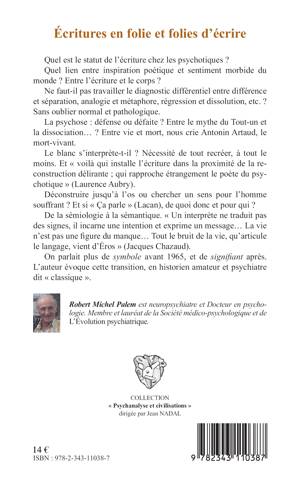 Quel est le statut de l'écriture chez les psychotiques ? Quel lien entre inspiration poétique et sentiment morbide du monde ? Entre corps et écriture ? Entre vie et mort, nous crie Antonin Artaud, le mort-vivant... De la sémiologie à la sémantique, du symbole au signifiant, l'auteur évoque dans cet essai, en historien amateur et en psychiatre dit "classique", les rapports entre folies et écritures.