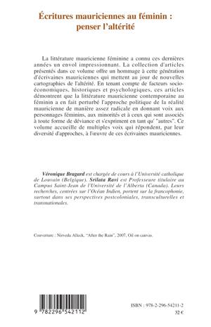 La littérature mauricienne féminine a connu ces dernières années un envol impressionnant. La collection d'articles présentés dans ce volume offre un hommage à cette génération d'écrivaines mauriciennes (Ananda Devi, Nathacha Appanah) qui mettent au jour de nouvelles cartographies de l'altérité.