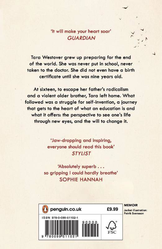 Tara Westover grew up preparing for the End of Days, watching for the sun to darken, for the moon to drip as if with blood. She spent her summers bottling peaches and her winters rotating emergency supplies, hoping that when the World of Men failed, her family would continue on, unaffected. She hadn't been registered for a birth certificate. She had no school records because she'd never set foot in a classroom, and no medical records because her father didn't believe in doctors or hospitals. According to the state and federal government, she didn't exist. As she grew older, her father became more radical, and her brother, more violent. At sixteen TAra decided to educate herself. Her struggle for knowledge would take her far from her Idaho mountains, over oceans and across continents, to Harvard and to Cambridge. Only then would she wonder if she'd travelled too far. If there was still a way home. Educated is an account of the struggle for self-invention. It is a tale of fierce family loyalty, and of the grief that comes with the severing of the closest of ties. With the acute insight that distinguishes all great writers, Westover has crafted, from her singular experience, a universal coming-of-age story, one that gets to the heart of what an education is and what it offers - the perspective to see one's life through new eyes, and the will to change it.