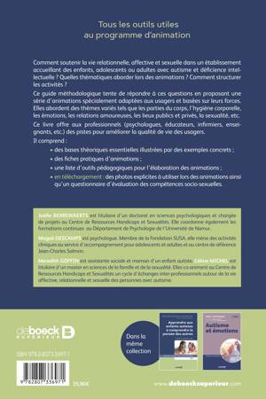 Ce guide méthodologique tente de répondre à ces questions en proposant une série d’animations spécialement adaptées aux usagers et basées sur leurs forces. Elles abordent des thèmes variés tels que les parties du corps, l’hygiène corporelle, les émotions, les relations amoureuses, les lieux publics et privés, la sexualité, etc.