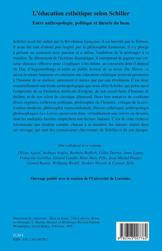 Séduit par la Révolution française, horrifié par la Terreur, Schiller se tournera plus tard vers la philosophie kantienne. Il consacre sa réflexion à ce qu'est la nature humaine et comment une éducation esthétique pouvait permettre à l'homme de se réaliser autrement et mieux que par une révolution. Schiller nous offre une étude anthropologique qui porte l'empreinte de sa formation médicale d'origine, de son savoir-faire d'homme de théâtre et de son talent de classique allemand. (Articles en français et en allemand).