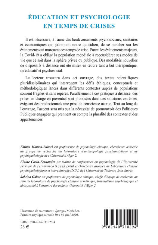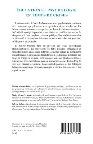 Il est nécessaire, à l'aune des bouleversements psychosociaux, sanitaires et économiques qui jalonnent notre quotidien, de se pencher sur les événements qui marquent ces temps de crise. Parmi les évènements majeurs, la Covid-19 a obligé la population mondiale à reconsidérer ses modes de vie que ce soit dans la sphère privée ou publique. Des modalités nouvelles de dispositifs à distance ont été mises en oeuvre tant à but thérapeutique, qu'éducatif et psychosocial. Le lecteur trouvera dans cet ouvrage, des textes scientifiques pluridisciplinaires qui interrogent les défis éthiques, conceptuels et méthodologiques lancés dans différents contextes auprès de populations souvent fragiles et sans repères. Parallèlement à ces pratiques à distance, des prises en charge en présentiel sont proposées dans des situations extrêmes, exigeant des professionnels une prise de conscience accrue. Tout au long de l'ouvrage, l'accent sera mis sur la nécessité de promouvoir des Politiques Publiques engagées qui prennent en compte la pluralité des contextes et des appartenances.