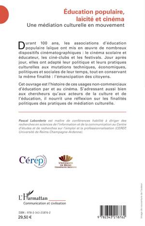 Durant 100 ans, les associations d'éducation populaire laïque ont mis en oeuvre de nombreux dispositifs cinématographiques: le cinéma scolaire et éducateur, les ciné-clubs et les festivals. Jour après jour, elles ont adapté leur politique et leurs pratiques culturelles aux mutations techniques, économiques, politiques et sociales de leur temps, tout en conservant la même finalité l'émancipation des citoyens. Cet ouvrage est l'histoire de ces usages non-commerciaux d'éducation par et au cinéma. S'adressant aussi bien aux chercheurs qu'aux acteurs de la culture et de l'éducation, il nourrit une réflexion sur les finalités politiques des pratiques de médiation culturelle.