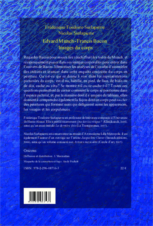Regarder Bacon pour mieux lire (déchiffrer) les toiles de Munch, et réciproquement puiser dans ses images corporelles pour entrer dans l'univers de Bacon. Mémoriser les analyses de l'un afin d'assembler des indices et avancer dans cette enquête conjointe du corps en peinture. Toutes ces questions permettent de cerner comment le corps se positionne dans l'espace pictural et la manière dont il s'empare du tableau.