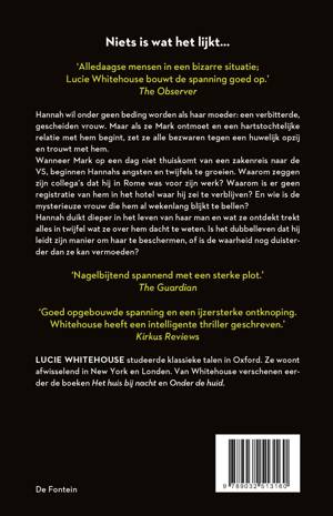 'Een andere waarheid' van Lucie Whitehouse is een thriller voor de fans van Nicci French, Camilla Läckberg en Clare Mackintosh''Mea culpa'. Hannah wil onder geen beding worden als haar moeder: een verbitterde, gescheiden vrouw. Maar als ze Mark ontmoet en een hartstochtelijke relatie met hem begint, zet ze alle bezwaren tegen een huwelijk opzij en trouwt met hem. Wanneer Mark op een dag niet thuiskomt van een zakenreis naar de VS, beginnen Hannahs angsten en twijfels te groeien. Waarom zeggen zijn collega's dat hij in Parijs was voor zijn werk? Waarom is er geen registratie van hem in het hotel waar hij zei te verblijven? En wie is de mysterieuze vrouw die hem al wekenlang blijkt te bellen? Hannah duikt dieper in het leven van haar man en ze wat ze ontdekt trekt alles in twijfel wat ze over hem dacht te weten. Is het dubbelleven dat hij leidt zijn manier om haar te beschermen, of is de waarheid nog duisterder dan ze kan vermoeden? Dubbelleven. Leugens.