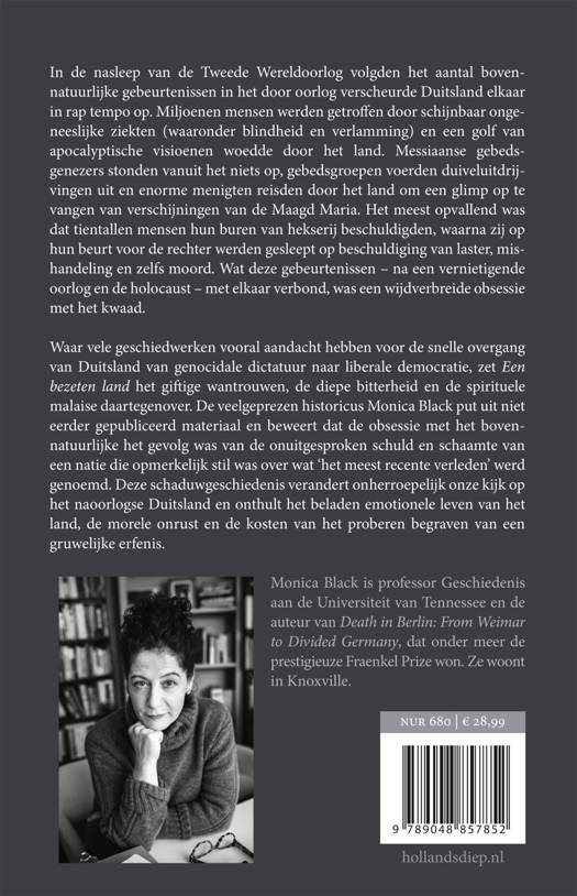 Waar vele geschiedwerken de snelle overgang van Duitsland van genocidale dictatuur naar liberale democratie benadrukken, zet Een bezeten land het giftige wantrouwen, de diepe bitterheid en de spirituele malaise daartegenover. De veelgeprezen historicus Monica Black put uit niet eerder gepubliceerd materiaal en beweert dat de obsessie met het bovennatuurlijke het gevolg was van de onuitgesproken schuld en schaamte van een natie die opmerkelijk stil was over wat 'het meest recente verleden' werd genoemd. Deze schaduwgeschiedenis verandert onherroepelijk onze kijk op het naoorlogse Duitsland en onthult het beladen emotionele leven van het land, de morele onrust en de kosten van het proberen begraven van een gruwelijke erfenis.