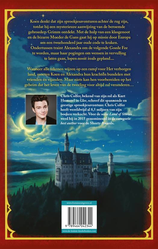 Koen denkt dat zijn sprookjesachtige avonturen achter de rug zijn, totdat hij een mysterieuze aanwijzing ontdekt die is achtergelaten door de beroemde gebroeders Grimm. Met de hulp van een klasgenoot en de bizarre Moeder Gans gaat hij op missie door Europa om een tweehonderd jaar oude code te kraken. Ondertussen traint Alexandra om de volgende Goed Fee te worden... maar haar pogingen om wensen in vervulling te laten gaan, lopen nooit zoals gepland. Zal ze ooit echt klaar zijn om de Feeënraad te leiden? Wanneer alle tekenen wijzen op een ramp voor Het verborgen land, moeten Koen en Alexandra hun krachten bundelen met hun vrienden én vijanden. Maar niets kan hen voorbereiden op de komende strijd of op het geheim dat het leven van de tweeling voor altijd zal veranderen...
