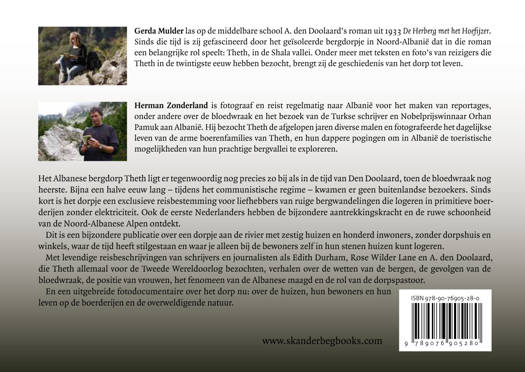 Het Albanese bergdorp Theth ligt er tegenwoordig nog precies zo bij als in de tijd van Den Doolaard, toen de bloedwraak nog heerste. Bijna een halve eeuw lang – tijdens het communistische regime – kwamen er geen buitenlandse bezoekers. Sinds kort is het dorpje een exclusieve reisbestemming voor liefhebbers van ruige bergwandelingen die logeren in primitieve boerderijen zonder elektriciteit. Ook de eerste Nederlanders hebben de bijzondere aantrekkingskracht en de ruwe schoonheid van de Noord-Albanese Alpen ontdekt. Dit is een bijzondere publicatie over een dorpje aan de rivier met zestig huizen en honderd inwoners, zonder dorpshuis en winkels, waar de tijd heeft stilgestaan en waar je alleen bij de bewoners zelf in hun stenen huizen kunt logeren. Met levendige reisbeschrijvingen van schrijvers en journalisten als Edith Durham, Rose Wilder Lane en A. den Doolaard, die Theth allemaal voor de Tweede Wereldoorlog bezochten, verhalen over de wetten van de bergen, de gevolgen van de bloedwraak, de positie van vrouwen, het fenomeen van de Albanese maagd en de rol van de dorpspastoor. En een uitgebreide fotodocumentaire over het dorp nu: over de huizen, hun bewoners en hun leven op de boerderijen en de overweldigende natuur.