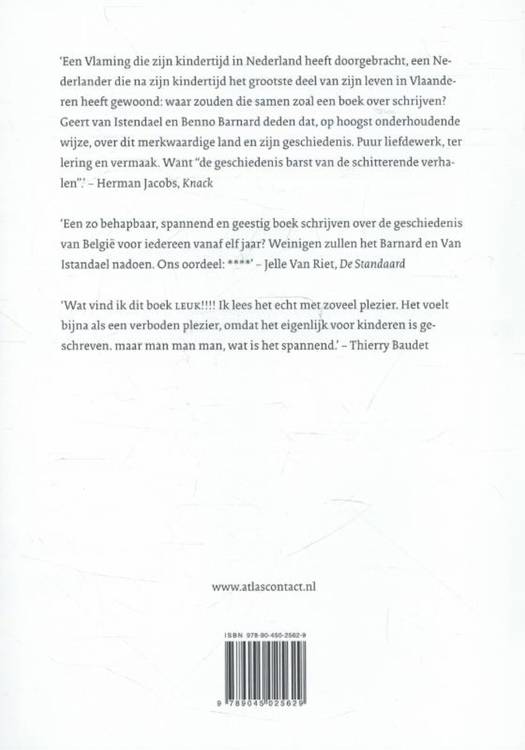 Karel de Grote is ons allen welbekend en de Guldensporenslag op 11 juli 1302 zeker ook. Maar wie weet dat die dag het sterkste ridderleger van Europa verslagen werd door slagers en wevers? Hoeveel rechtgelovige mensen heeft de wrede hertog van Alva op de brandstapel gebracht? Waarom staat in Waterloo die leeuw op zijn rare heuvel? Vanaf de prehistorie tot aan het heden geven Benno Barnard en Geert van Istendael een schat aan verhalen over de geschiedenis van België, vol avonturen, over dappere helden en sinistere schurken. Verhalen over figuren en gebeurtenissen die u zich nog vaag zult herinneren van de middelbare school, worden hier in geuren en kleuren heropgedist, met prachtige illustraties van Judith Vanistendael, zodat u eens te meer aan uw eigen kinderen kunt bewijzen: geschiedenis hoeft nooit saai te zijn!
