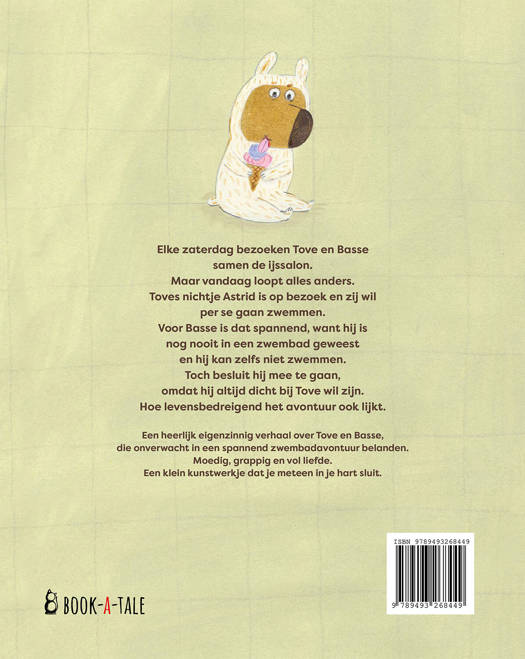 Elke zaterdag bezoeken Tove en Basse samen de ijssalon. Maar vandaag loopt alles anders. Toves nichtje Astrid is op bezoek en zij wil per se gaan zwemmen. Voor Basse is dat spannend, want hij is nog nooit in een zwembad geweest en hij kan zelfs niet zwemmen. Toch besluit hij mee te gaan, omdat hij altijd dicht bij Tove wil zijn. Hoe levensbedreigend het avontuur ook lijkt.