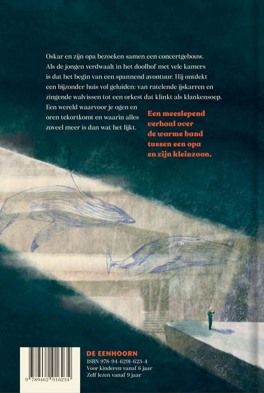 Oskar en zijn opa bezoeken samen een concertgebouw. Als de jongen verdwaalt in het doolhof met vele kamers is dat het begin van een spannend avontuur. Hij ontdekt een bijzonder huis vol geluiden: van ratelende ijskarren en zingende walvissen tot een orkest dat klinkt als klankensoep. Een wereld waarvoor je ogen en oren tekortkomt en waarin alles zoveel meer is dan wat het lijkt.