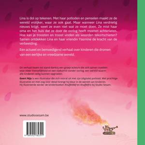 Een actueel en bemoedigend verhaal over kinderen die dromen van een eerlijke en vreedzame wereld. Voor kinderen 4+. Lina is dol op tekenen. Met haar potloden en penselen maakt ze de wereld vrolijker, waar ze ook gaat. Maar wanneer Lina verdrietig nieuws krijgt, weet ze even niet wat ze moet doen. Ze mist haar oma en het huis dat ze door de oorlog heeft moeten achterlaten. Hoe kan je troosten en troost vinden als woorden tekortschieten? Samen ontdekken Lina en haar vriendin Yasmine de kracht van de verbeelding. Een actueel en bemoedigend verhaal over kinderen die dromen van een eerlijke en vreedzame wereld. Dit verhaal kwam tot stand dankzij een groep auteurs die zich samen inzetten voor meer menselijkheid en een toekomst zonder oorlog – een wereld waarin alle kinderen veilig kunnen opgroeien. Geert Nijs is een illustrator die zich vooral uit met zijn (digitale) potlood. Met prachtige illustraties en met oog voor detail brengt hij kleur in de wereld van kinderen. Hij illustreerde eerder de kinderboeken Knuffeldief en Knuffelfris bij Studio Sesam.