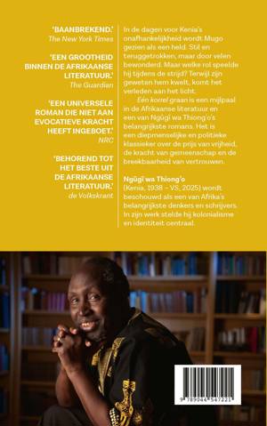 Eén korrel graan is een mijlpaal in de Afrikaanse literatuur en een van Ngugi wa Thiong’o’s belangrijkste romans. Het is een diepmenselijke en politieke klassieker over de prijs van vrijheid, de kracht van gemeenschap en de breekbaarheid van vertrouwen.