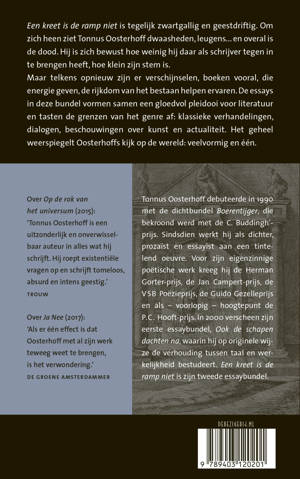 Een kreet is de ramp niet is tegelijk zwartgallig en geestdriftig. Om zich heen ziet Tonnus Oosterhoff dwaasheden, leugens... en overal is de dood. Hij is zich bewust hoe weinig hij daar als schrijver tegen in te brengen heeft, hoe klein zijn stem is.