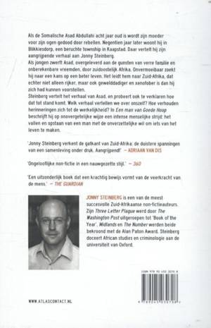 Als de Somalische Asad Abdullahi acht jaar oud is wordt zijn moeder voor zijn ogen gedood door rebellen. Negentien jaar later woont hij in Blikkiesdorp, een beruchte township in Kaapstad. Daar vertelt hij zijn aangrijpende verhaal aan Jonny Steinberg. Als jongen zwerft Asad door zuidoostelijk Afrika, overgeleverd aan de gunsten van verre familie en onberekenbare vreemden. Onvermoeibaar zoekt hij naar een kans op een beter leven. Het leidt hem naar Zuid-Afrika, dat echter niet alleen rijker, maar ook gewelddadiger en xenofober is dan hij zich had kunnen voorstellen. Steinberg vertelt het verhaal van Asad, en probeert ook te verklaren hoe dat tot stand komt. Welk verhaal vertellen we over onszelf? Hoe verhouden herinneringen zich tot de werkelijkheid? In Een man van Goede Hoop beschrijft hij op onovergetelijke wijze een intense menselijke strijd: het vallen en opstaan van een man met de onverzettelijke wil om iets van het leven te maken.