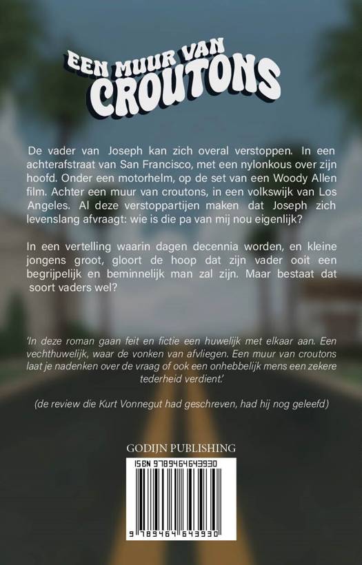 De vader van Joseph kan zich overal verstoppen. In een achterafstraat van San Francisco, met een nylonkous over zijn hoofd. Onder een motorhelm, op de set van een Woody Allen film. Achter een muur van croutons, in een volkswijk van Los Angeles. Al deze verstoppartijen maken dat Joseph zich levenslang afvraagt: wie is die pa van mij nou eigenlijk? In een vertelling waarin dagen decennia worden, en kleine jongens groot, gloort de hoop dat zijn vader ooit een begrijpelijk en beminnelijk man zal zijn. Maar bestaat dat soort vaders wel?