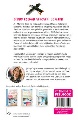 In Een nieuwe zomer in de kleine bakkerij van Jenny Colgan arriveert Marisa Rossi op het prachtige eiland Mount Polbearne, maar ze merkt van de mooie omgeving nauwelijks iets op. Sinds de dood van haar geliefde grootvader is ze zichzelf niet meer en heeft ze een angststoornis ontwikkeld. Zelfs het koken van heerlijke Italiaanse gerechten, normaalgesproken haar passie, is haar nu te veel. Marisa verschuilt zich in haar vakantiehuis, totdat ze van haar therapeut haar horizon moet gaan verbreden. Die plannen worden echter behoorlijk bemoeilijkt door Marisa’s nieuwe buurman, een aantrekkelijke maar luidruchtige Russische pianoleraar. Ze wordt gek van zijn gecomponeer dat tot diep in de nacht doorgaat.
