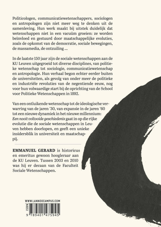 Van een ontluikende wetenschap tot de ideologische verwarring van de jaren '30, van expansie in de jaren '60 tot een nieuwe dynamiek in het nieuwe millennium: Een nooit voltooide geschiedenis gaat in op die rijke evolutie die de sociale wetenschappen in Leuven hebben doorlopen, en geeft een unieke insidersblik in universiteit en maatschappij.