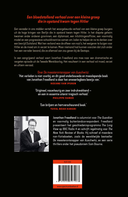 Jonathan Freedland is columnist voor The Guardian en voormalig buitenlandcorrespondent. Hij was Commentator van het jaar 2016 en won in 2014 de Orwell Prize for Journalism. Freedland presenteert het geschiedenisprogramma The Long View op BBC Radio 4 en schrijft regelmatig voor The New York Review of Books. Hij schreef al meerdere non-fictieboeken, en ook een serie thrillers onder het pseudoniem Sam Bourne.