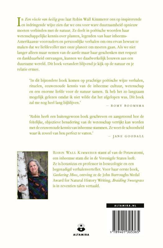 In haar bijzondere boek 'Een vlecht van heilig gras' laat Robin Wall Kimmerer ons op een inspirerende en indringende manier zien dat we ons voor ware duurzaamheid opnieuw moeten verbinden met de natuur. Ze deelt in poëtische woorden haar wetenschappelijke kennis over planten en mixt die met legenden van haar inheems-Amerikaanse voorouders en persoonlijke verhalen.