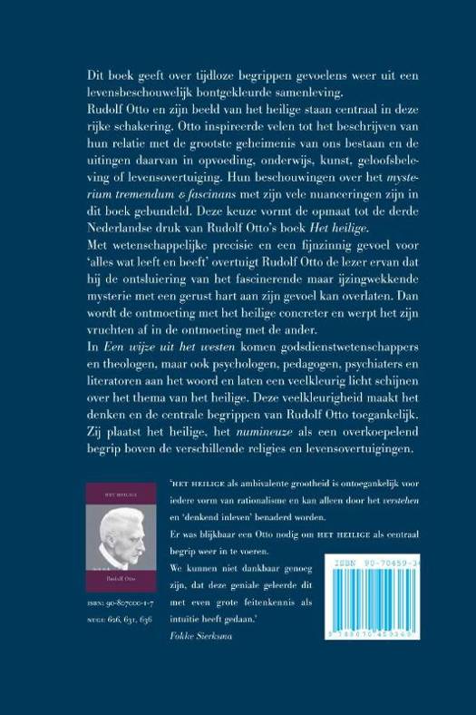 Met wetenschappelijke precisie en een fijnzinnig gevoel voor 'alles wat leeft en beeft' overuigt Rudolf Otto de lezer ervan dat hij de ontsluiering van het fascinerende maar ijzingwekkende mysterie met een gerust hart aan zijn gevoel kan overlaten. Dan wordt de ontmoeting met het heilige concreter en werpt het zijn vruchten af in de ontmoeting met de ander.