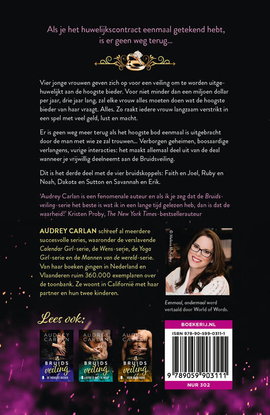 ‘Audrey is een fenomenale auteur, een van mijn favoriete personen en als ik je zeg dat de Bruidsveiling-serie het beste is wat ik in een lange tijd gelezen heb, dan is dat de waarheid!’ The New York Times-bestsellerauteur Kristen Proby