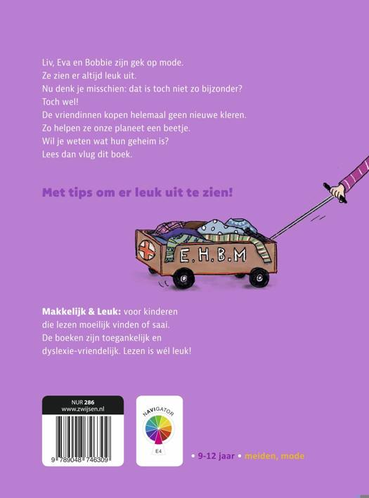 Liv, Eva en Bobbie zijn gek op mode. Ze ziet er altijd leuk uit. Nu denk je misschien ... Dat is toch niet zo bijzonder? Toch wel! De vriendinnen kopen nooit nieuwe kleren. Zo helpen ze onze planeet een beetje. Wil je weten wat hun geheim is? Lees dan vlug dit boek, mét modetips!
