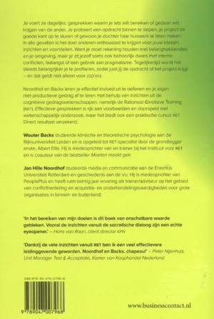 Noordhof en Backx leren je effectief invloed uit te oefenen en je eigen niet-productieve gedrag af te leren met behulp van inzichten uit de cognitieve gedragswetenschappen, namelijk de Rationeel-Emotieve Training (RET). Effectieve gesprekken is rijk aan voorbeelden en doorspekt met wetenschappelijk onderzoek, maar het biedt ook een praktische cursus RET. Direct resultaat verzekerd.