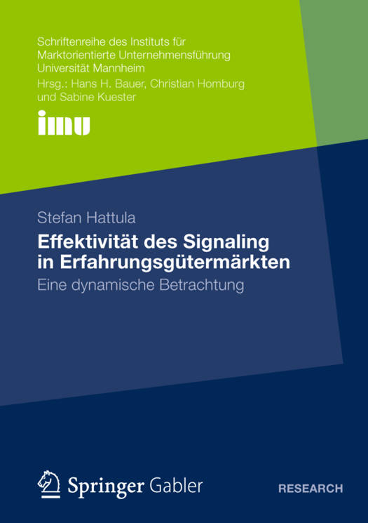 Insbesondere in Erfahrungsgütermärkten ist die Relevanz von Signaling unbestritten. Aufgrund von hoher Informationsasymmetrie mit dem Unternehmen suchen dessen Stakeholder nach verlässlichen Informationen über Fähigkeiten und Intentionen des Unternehmens, den Signalen. Allerdings sind in der Unternehmenspraxis deutliche Unterschiede hinsichtlich der Effektivität von verschiedenen Signalen zu beobachten, die selbst für das gleiche Unternehmen im Zeitablauf existieren können. Auf Basis von objektiven Sekundärdaten und zwei empirischen Studien findet Stefan Hattula in dem organisationalen Lebenszyklus von Unternehmen und dem Konjunkturzyklus Erklärungsansätze für die Dynamik in der Effektivität von Signalen.
